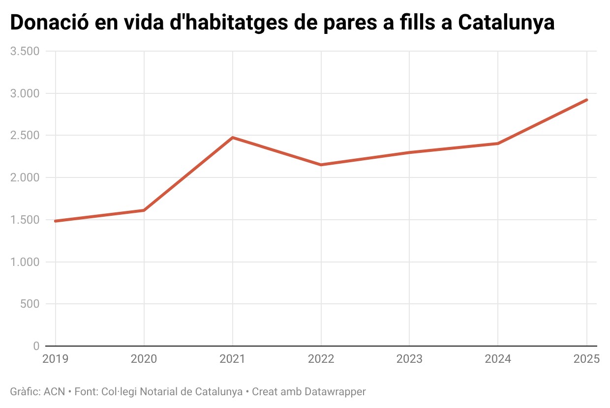 Aquest augment del 96% de les donacions en vida entre el 2025 i el 2019 reflecteix el pes creixement del suport familiar en el cas de les famílies que s’ho poden permetre perquè tenen actius immobiliaris. “Això afecta només els que tenen la sort que els seus pares els poden donar un habitatge però els que no, que són la majoria, tenen una autèntica dificultat pels joves. Per això és important centrar les polítiques d’habitatge en ells: el finançament, l’habitatge protegit, etc”, ha afirmat el director del Centre Tecnològic del Notariat, Albert Martínez Lacambra.