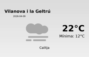 Avui, els habitants de Vilanova i la Geltrú poden esperar un dia moderadament agradable en termes de temperatures, amb valors que oscil·laran entre els 22°C de màxima i els 12°C de mínima. És un contrast suau que fa d’aquest un dia ideal per a activitats a l’aire lliure, sempre que es facin a primera o última hora del dia.
