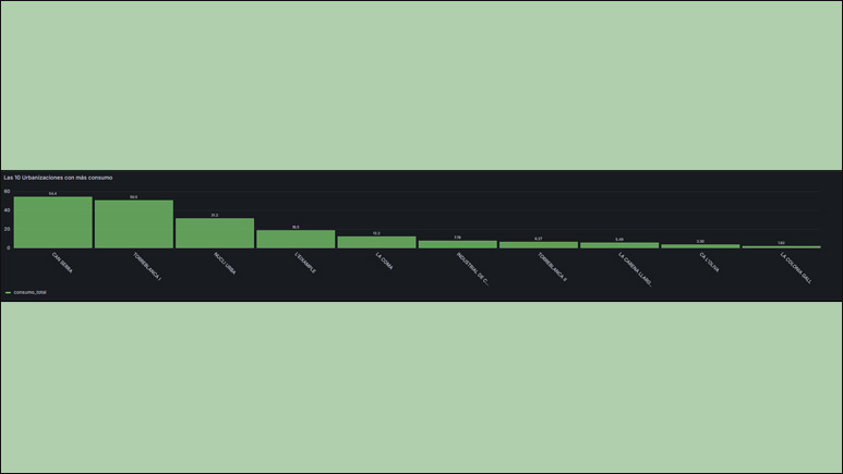 Gràcies a aquest projecte, s’ha creat un quadre de comandament avançat dins la plataforma que permet visualitzar indicadors estratègics, com les àrees amb major consum d’aigua i la detecció d’anomalies, contribuint a una gestió més eficaç del recurs hídrico.